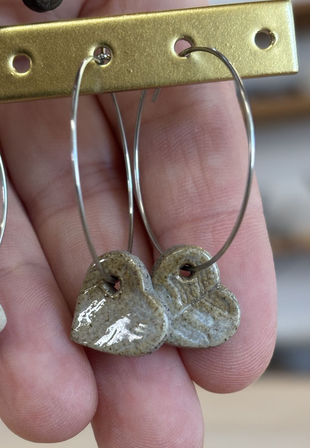 Orecchini in grès smaltato. Creole 30mm in acciaio inossidabile.