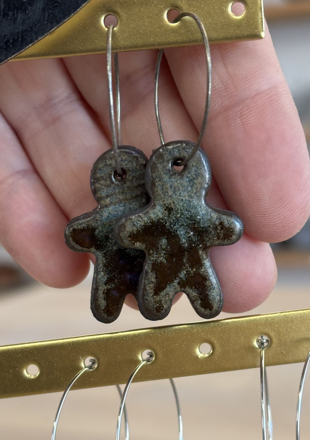 Orecchini in grès smaltato. Creole 25mm in acciaio inossidabile.