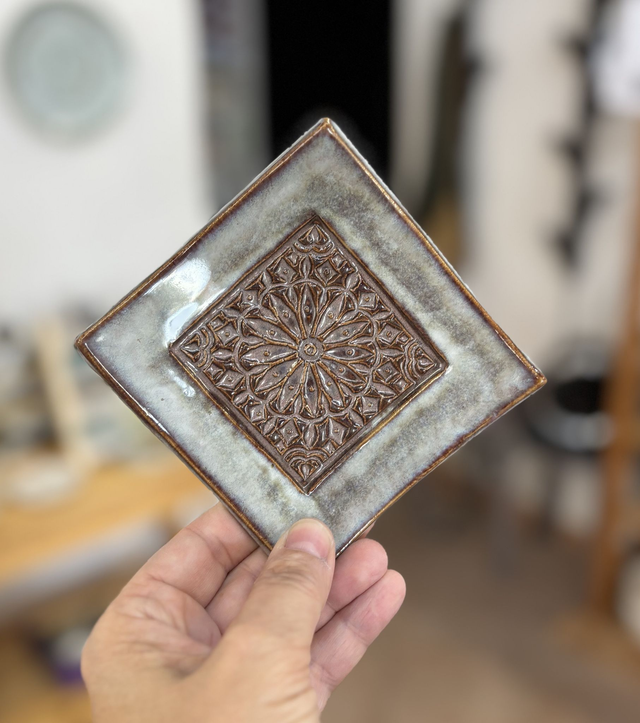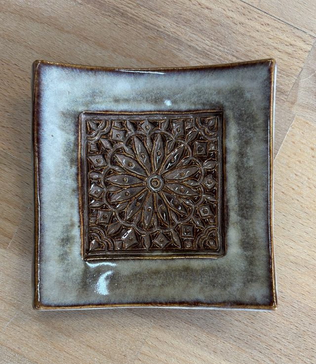 Piattino in grès smaltato bicolore.