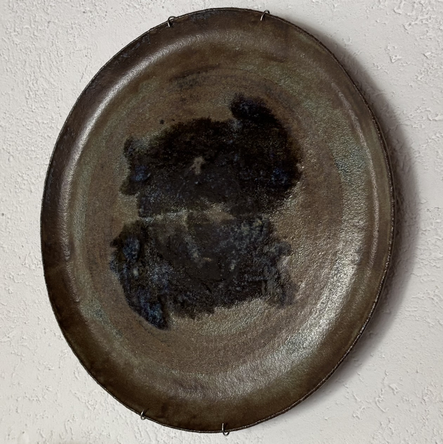 Piatto carpe in ceramica grès scura smaltato stile Wabi Sabi.